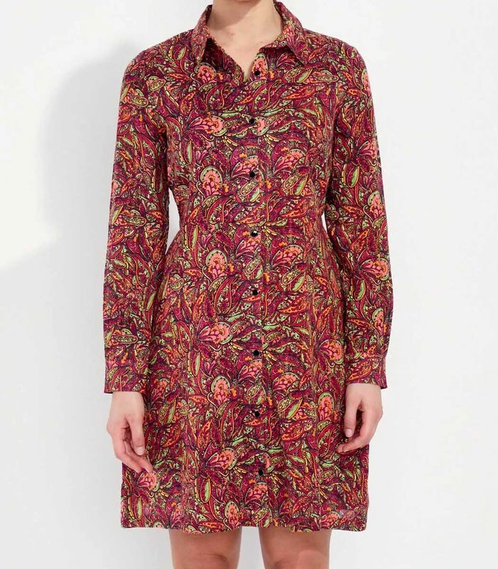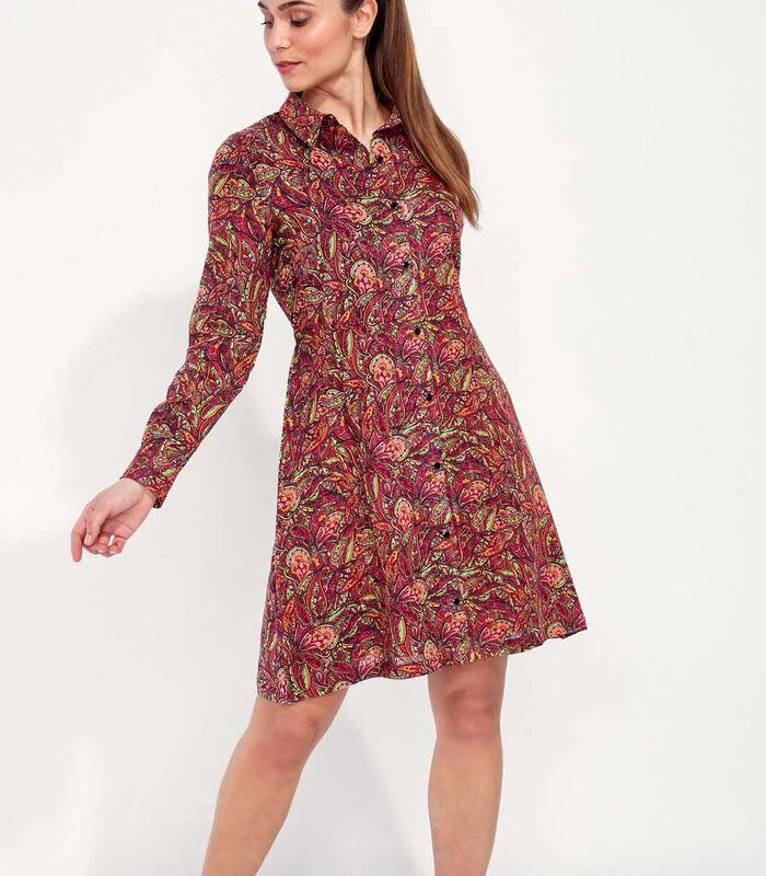 Vrouwelijke en comfortabele overhemdkatoenen jurk met zijn zachte katoen en figuurverbeterende getailleerde pasvorm.