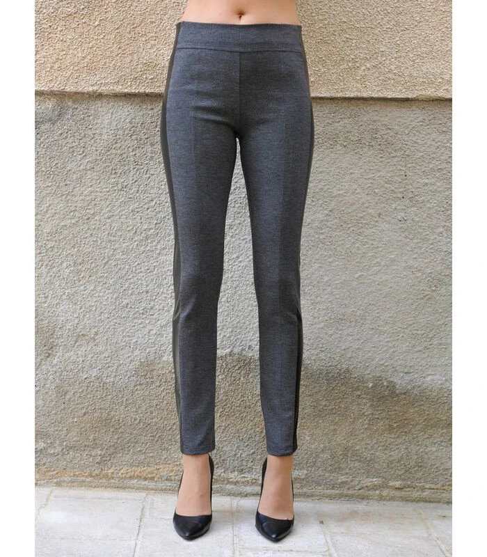 De CHERYL–broek zal u verleiden met zijn slanke snit die uw benen sublimeert, zijn hoge taille en zijn ultracomfortabele milano–stof. Wij houden van het detail van de imitatieleren banden aan de zijkant van de benen, dinner jacket spirit, helemaal in de trend van het moment.