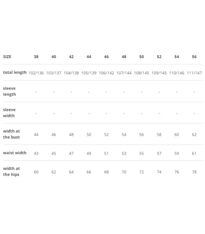 | Maat | 38, 40, 42, 44, 46, 48, 50, 52, 54, 56 |