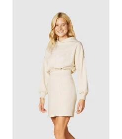 Knuffel modus aan! De Charlie Dress is de perfecte knusse essential voor koelere temperaturen en maakt tegelijkertijd een fashion statement. Terwijl de top oversized is gesneden, accentueren de geribde taillenaad en de nauwsluitende rok het vrouwelijke figuur. De lange, gezwollen mouwen met geribde boorden zijn ook opvallend. Charlie verrast met zijn veelzijdigheid: de hoodiejurk kan casual worden gecombineerd met sneakers in een athleisure look of casual chic met een panty en enkellaarsjes.