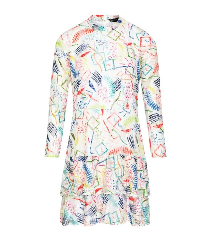 De VICTORIA jurk is net zo uniek als u bent…vrouwelijk, romantisch en gedurfd. We houden van zijn witte kant met een kleurrijk geometrisch patroon perfect voor lentedagen.Zomerjurk in bedrukt stretch kant – Witte mesh lichaamsvoering – Hoge halslijn met klein kraagje – Lange mouwen – Gesneden taille – Twee volants aan de onderkant van de jurk – Dropsluiting met klein knoopje aan de achterkant halslijnWASSEN moet in de machine op delicaat programma. Samenstelling : 97% POLYESTER 13% ELASTHANNE