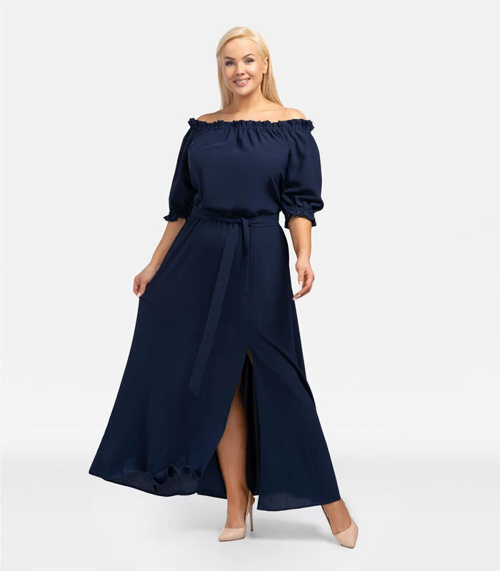 Spaanse lange jurk ASTRA – een mooie lange jurk met een split op het been. In dit model maak je zeker een goede indruk op je omgeving en blijf je zeker onvergetelijk. De stijl van de jurk en de kleuren die prachtig harmoniëren met de zomerse kleur maken het onmogelijk om je ogen van je af te houden. Snit – perfect voor dames met een grotere maat. Het is verkrijgbaar in prachtige kleuren, zodat jullie allemaal de perfecte voor jezelf kunnen kiezen. Ondanks dat de jurk niet teveel van het lichaam onthult, voel je je er heel vrouwelijk en sensueel in. De halslijn in Spaanse stijl legt prachtig de buste en schouders bloot en de lange lengte verbergt eventuele onvolkomenheden in het onderlichaam. Het verlengt en slankt ook het figuur. Dit model is volledig gemaakt in Polen. Ontworpen door onze ontwerpers Karko en genaaid in onze naaikamers. De snit is perfect voor verschillende soorten figuren, en belangrijker nog, zowel korte als lange dames zullen er erg goed uitzien. Het model dat we presenteren, beperkt de beweging niet en dankzij het elastiek in de taille verbetert het de proporties van het figuur. Kies deze jurk als je jezelf zelfvertrouwen wilt geven en je extreem aantrekkelijk wilt voelen. Het ASTRA–model is perfect voor bruiloften, communies, doopfeesten of andere vieringen.