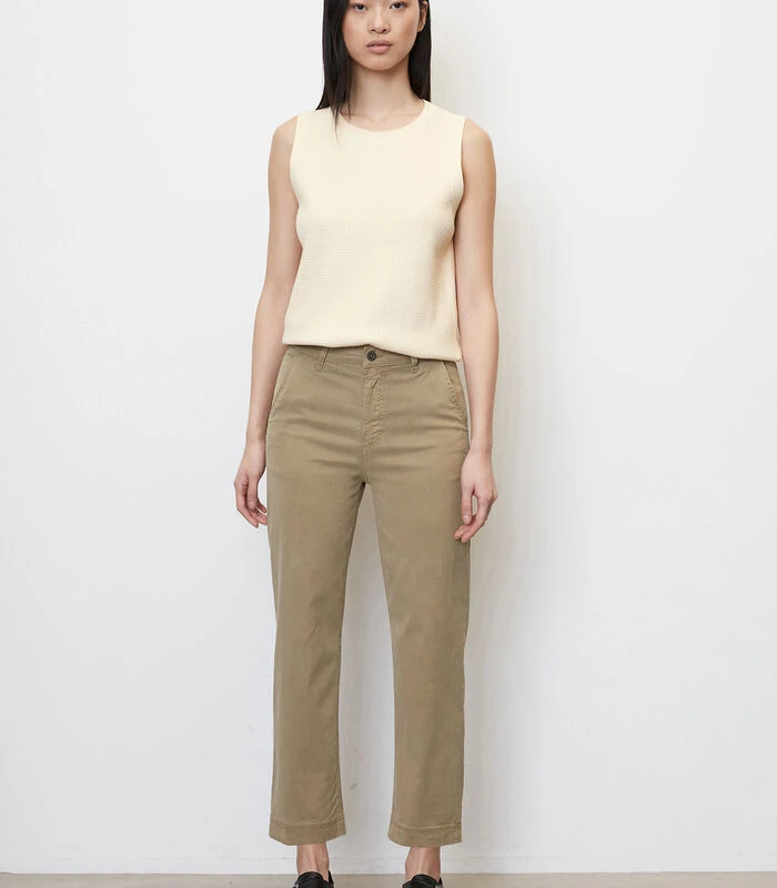 In een cleane, minimalistische workwearโlook en straight to the heart: de nieuwe HULTEโbroek heeft een recht model, een vrouwelijke hoge taille en moderne, verkorte pijpen. We zijn er nu al gek op! De stof: hoogwaardig, exclusief uit een lyocellโkatoenmix met elastaan. Valt soepel en benadrukt het vrouwelijke model. Met schuine steekzakken aan de voorkant en grote, opgestikte achterzakken.