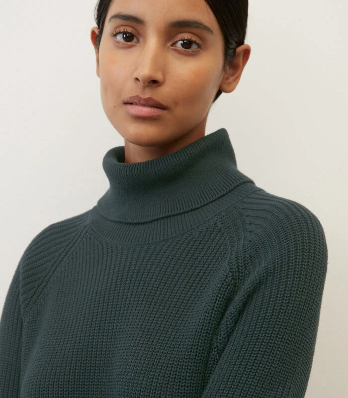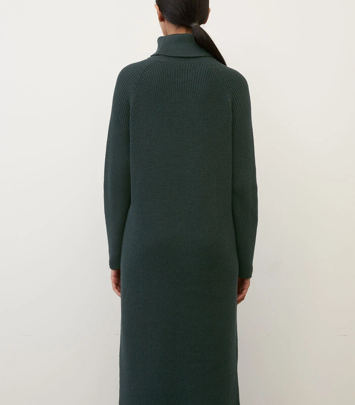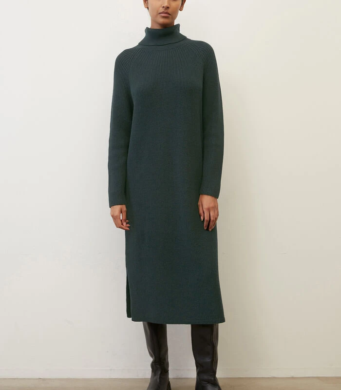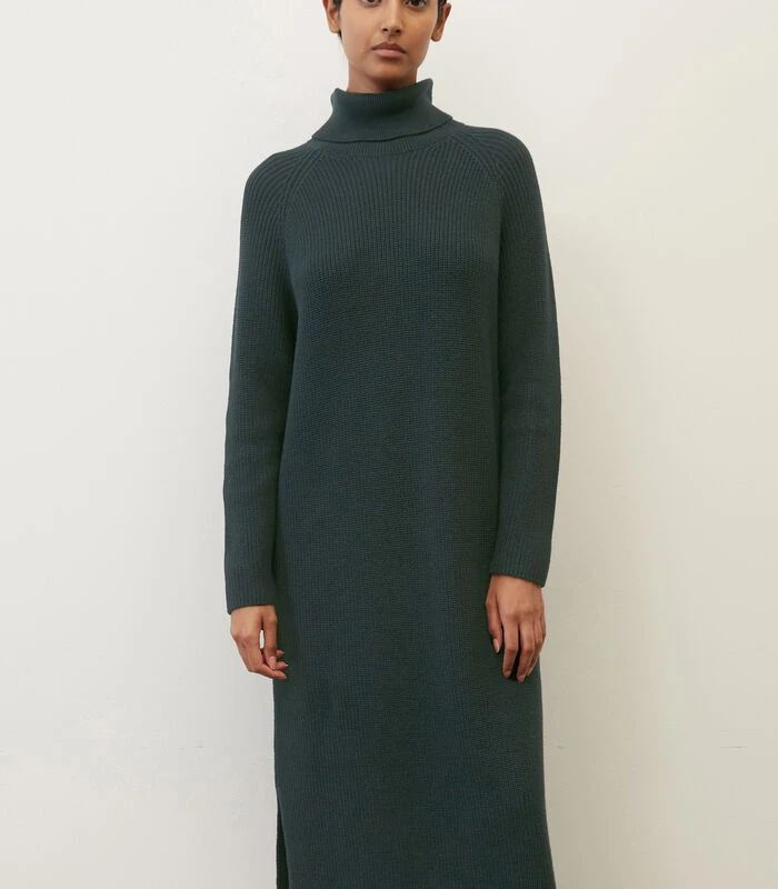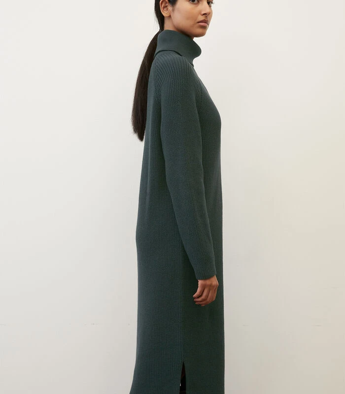 Big fashion love: gebreide jurken! Relaxed, met aangename pasvorm en hoog draagcomfort. Het model van compact, zwaar en zuiver biologisch katoen heeft een patroon van halve patentsteken en overtuigt met een casual loose fit. Met turtleneck, sportieve raglanmouwen en hoge zijsplitten die bij het lopen voor een zwierig gevoel zorgen. De jurk is een echte allrounder en kan op allerlei manieren worden gecombineerd tot de meest uiteenlopende looks โ sportief met sneakers, elegant met high heels of casual met loafers.