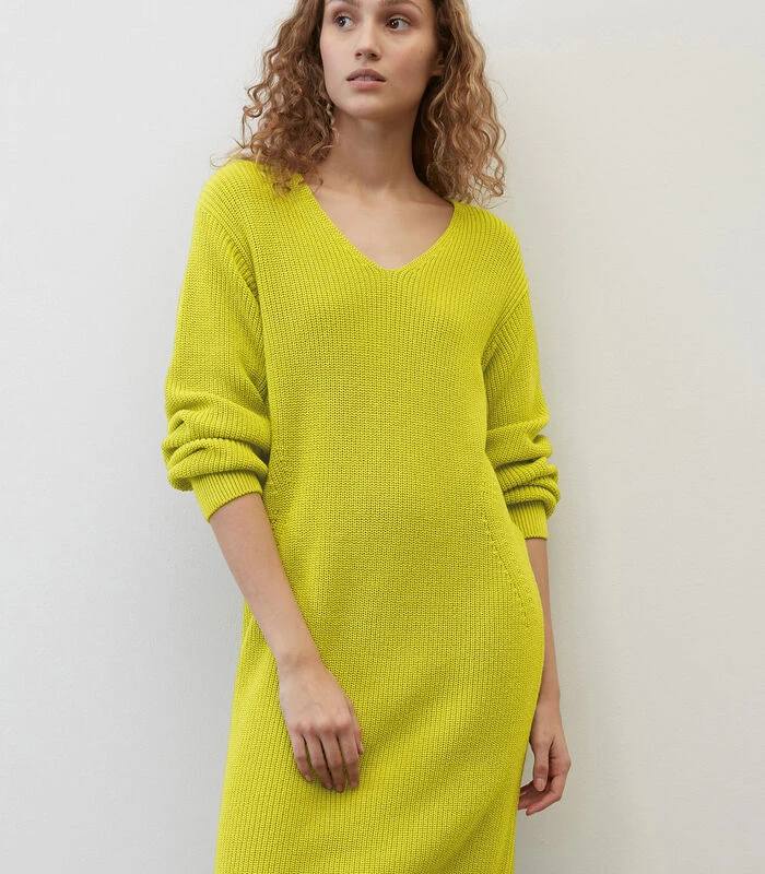 Big fashion love: gebreide jurken! Relaxed, met aangename pasvorm en hoog draagcomfort. Het model van compact, zuiver biologisch katoen met gemiddeld gewicht, heeft een klassiek patroon van halve patentsteken en overtuigt met een casual, licht getailleerde fit en een opvallende structuur. Met lage, afgeronde Vโhals, lange mouwen en een rechte zoom. De jurk is een echte allrounder en kan op allerlei manieren worden gecombineerd tot de meest uiteenlopende looks โ sportief met sneakers, elegant met high heels of casual met loafers.