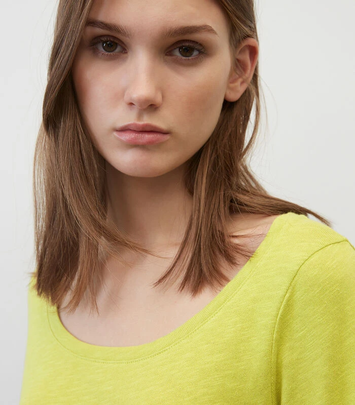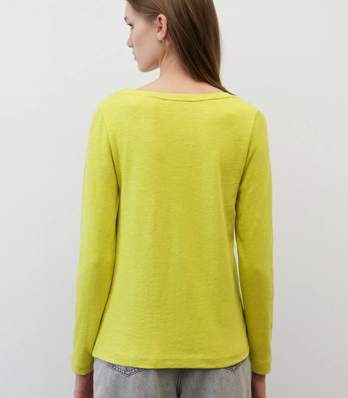 Bestseller, een blijvende modetrend en het perfecte alternatief voor een sweatshirt: T–shirt met lange mouwen met een klassieke, fijn geribde, wijde ronde hals en een rechte zoom. De longsleeve is gemaakt van casual heavy slub jersey van zuiver, gecertificeerd biologisch katoen. De binnenkant is zacht geruwd en biedt hoog draagcomfort. De fit: bekend, loose, comfortabel en met een lichte A–shape.