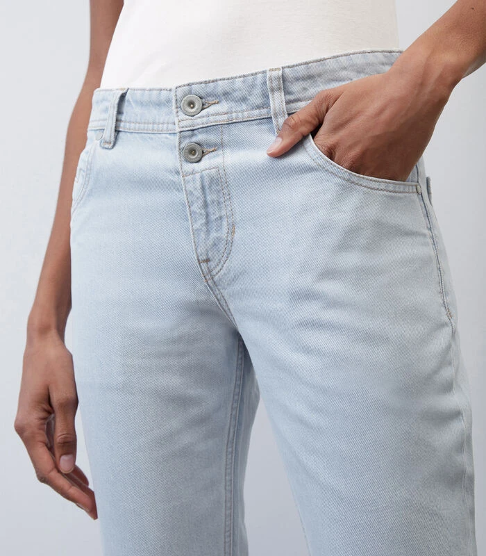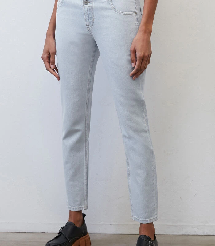 OUR CLEANEST JEANS PROJECT. Nonchalante boyfriend cut met een modern design en een ultracoole wassing! Het model THEDA boyfriend cropped heeft een losse fit met een klassieke, middelhoge taille en is even casual als comfortabel. Bijzonder: de steekzakken, de tweede, zichtbare knoop, het kleine muntzakje en de kortere lengte. Het hoge gehalte lyocell zorgt voor een comfortabele, flexibele en zachte pasvorm en exclusief draagcomfort. Het model past zich in een handomdraai aan allerlei verschillende outfits en stijlen aan en weet moeiteloos de spagaat te maken tussen sneakers, high heels en chunky boots.