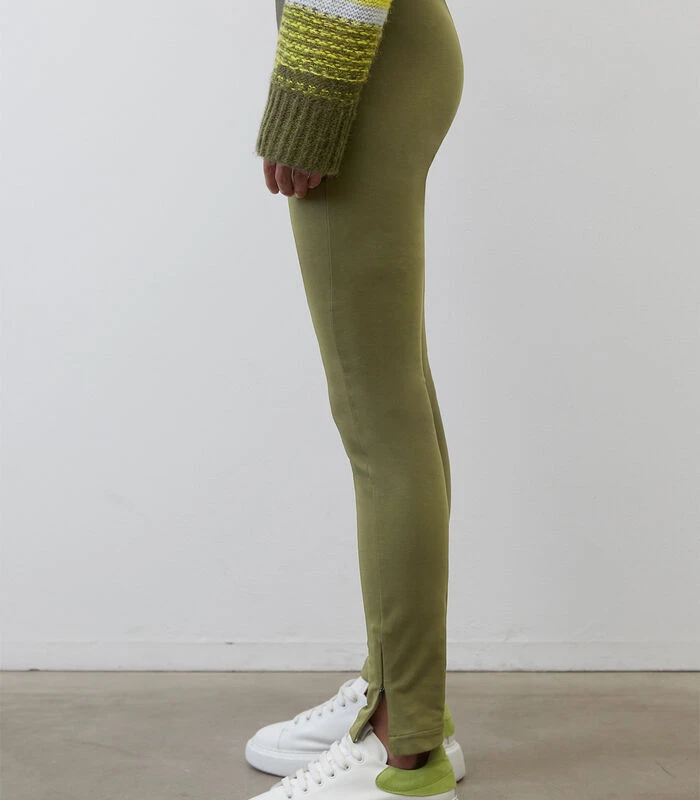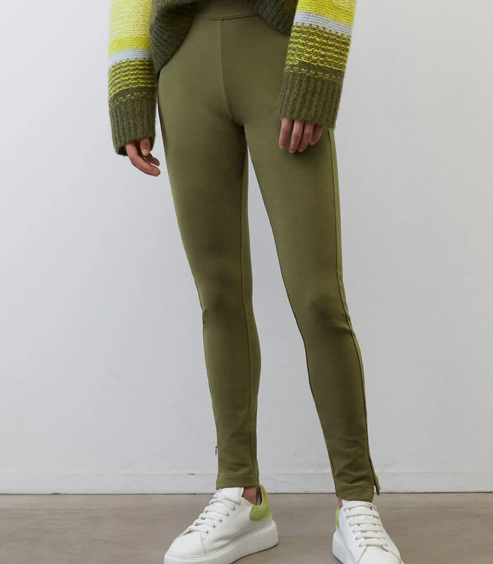 Leggings zijn de nieuwe skinny jeans. Smal model van compacte stretch–interlock–jersey van een hoogwaardige mix met biologisch katoen. De broek is een fantastische combipartner, omdat hij overal bij past – van hoodie tot grofgebreide trui en van nette zakelijke blouses tot luchtige blouseshirts. Met brede, hoogwaardige elastische band, naar voren verplaatste zijnaden met ritsen in de zoom en casual tweelingnaaldstiksels.