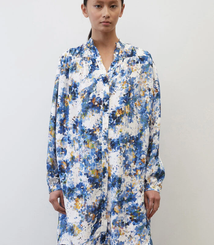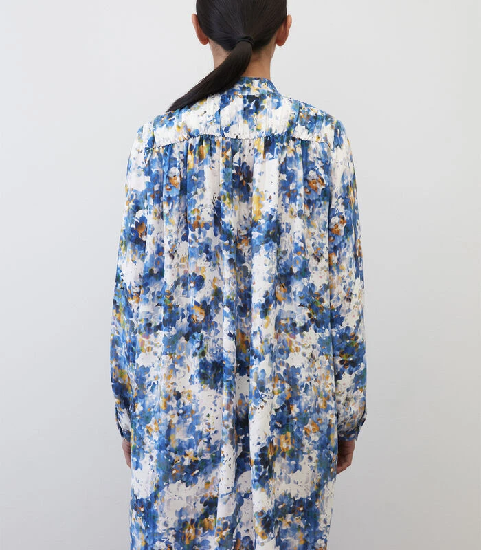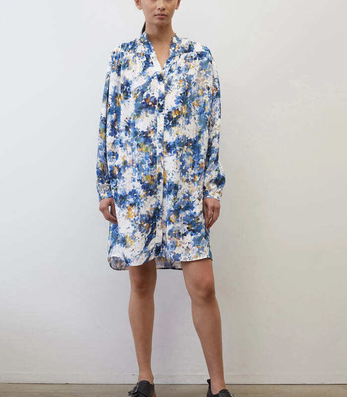 Heeft de ideale lengte voor kantoor, gewoon elke dag en het strand: zeer losjes vallende en wijde overhemdjurk met opvallende plooidetails aan de voor– en achterkant. De knielange jurk met opstaande kraag heeft een doorlopende knoopsluiting aan de voorkant, casual volumineuze mouwen met smalle zoom en twee handige in de zijnaad weggewerkte steekzakken. Dankzij het luchtige model en de exclusieve stof van viscose en cupro kan de jurk de hele zomer door worden gedragen.