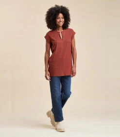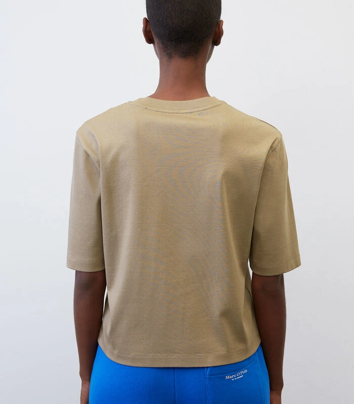 Perfect als basic: het T–shirt is de meest casual allrounder van het nieuwe seizoen. De modeklassieker heeft een lange traditie en gaat dit jaar de volgende moderonde in. Ons model is gemaakt van jersey van het allerfijnste geribde, zuivere en gemerceriseerde katoen en heeft een klassieke ronde hals, oversized schouders, casual 3/4–mouwen en rechte zoomboorden.