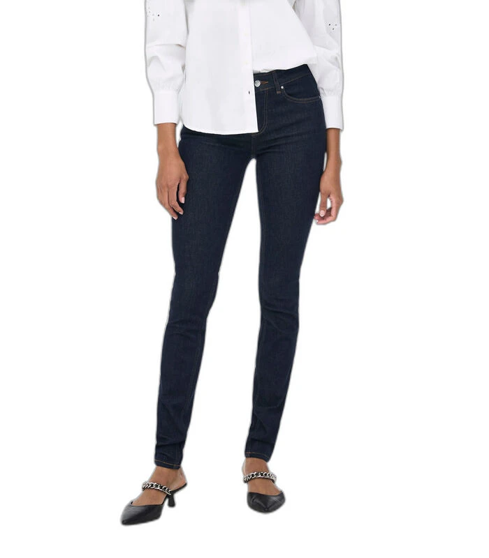 โ Detail Type : Skinny fit jeansโ Stof : Gemaakt van highโperformance extra stretchy stoffen voor dat nextโlevel feelโgood comfortโ Sluiting/Glijf : Ritssluitingโ Andere zakken : Klassieke vijfโpocket stijlโ Afwerking wassing : Donker blauwe wassingโ Taille/Taille : Mid tailleโ Pasvorm : Skinny Fit