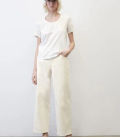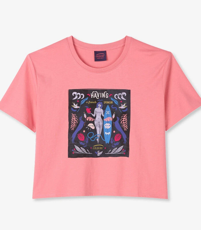 • T–shirt uit zacht katoen, ronde hals, korte mouwen, brede en korte snit