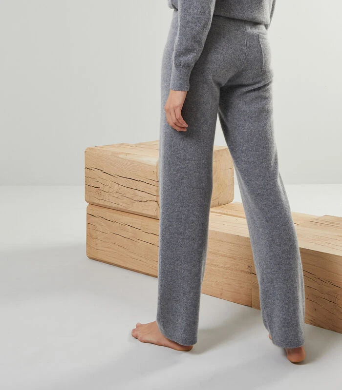 De wijde pantalon van 100% kasjmier is een essentieel onderdeel van elke garderobe. Gedragen als total look met de sweater met capuchon voor een casual look of met een mooie kasjmier basic en de bijpassende sjaal voor een dag waarop het verlangen naar comfort overheerst. Dankzij het trekkoord en de grootte past het bij elk lichaamstype. Dit model valt normaal qua maat.