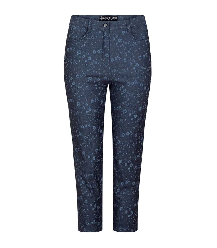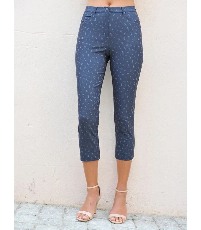 Zomerbroek van ultra–stretch stof met een klein bloemmotief