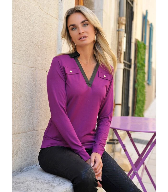 Kraag en V–hals in imitatieleer