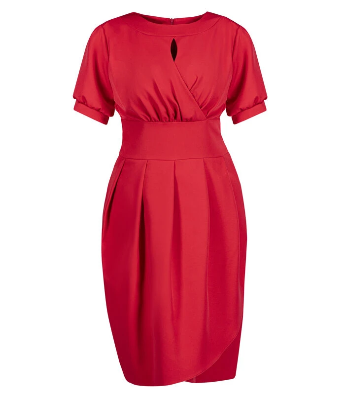 Een ongewone jurk met een druppelvormige halslijn in de taille van INGRIDA – het is een mooi, zeer elegant model van de jurk. Het werd volledig in Polen genaaid in onze naaikamers van de beste kwaliteit huishoudmaterialen. Ze bieden ongelooflijk comfort en zijn aangenaam om aan te raken. Bovendien zal je er dankzij een zorgvuldige uitvoering zeker jarenlang plezier van hebben. Het heeft mouwen tot de elleboog en de totale lengte reikt tot aan de knieën. De kenmerkende elementen van dit model zijn een charmante druppelvormige halslijn en een cut–off in de taille. Perfect voor bruiloften, communies of andere belangrijke feesten. Het is verkrijgbaar in verschillende prachtige kleuren. Het is ontworpen door onze Karko–ontwerpers speciaal voor vrouwen die op zoek zijn naar een originele jurk voor belangrijke evenementen!