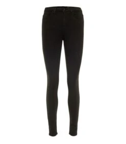 SKINNY JEANS VOOR DAMES – HOGE TAILLE – SKINNY SNIT – 5 ZAKKEN – RIEMLUSSEN EN JUK – KLEUR : DIEPZWART