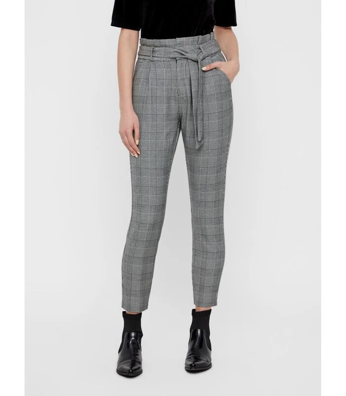 – Hoge taille broek met papieren zakken – Regular fit – Stretchy viscose mix materiaal – Wikkel rond de tailleband – Steekzakken aan de voorkant – Nepzakken aan de achterkant.