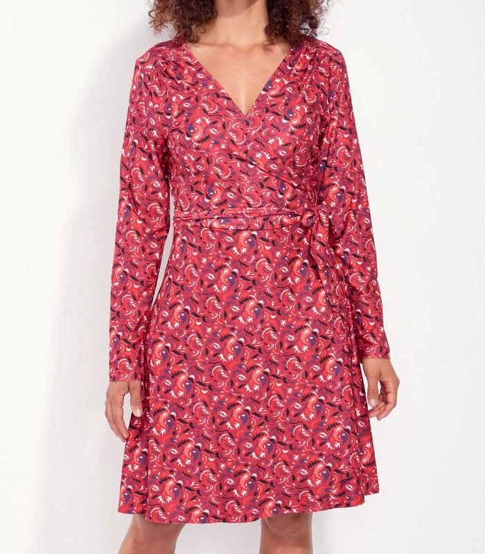 Comfortabele wikkeljurk met opdruk en ultrazachte stof met perzikhuideffect die je nooit meer kwijt wilt! Chique met een retro twist, de wikkeljurk is vrouwelijk maar comfortabel en verbetert het figuur van elk lichaamstype met zijn strikceintuur.